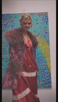 Wear it to gatherings, art shows, concerts, evenings out, or anytime you want that effortless 70s glam-rock meets bohemian goddess vibe. It’s a statement piece that elevates jeans, maxi skirts, dresses — truly anything you pair it with — while adding warmth, color, and personality.